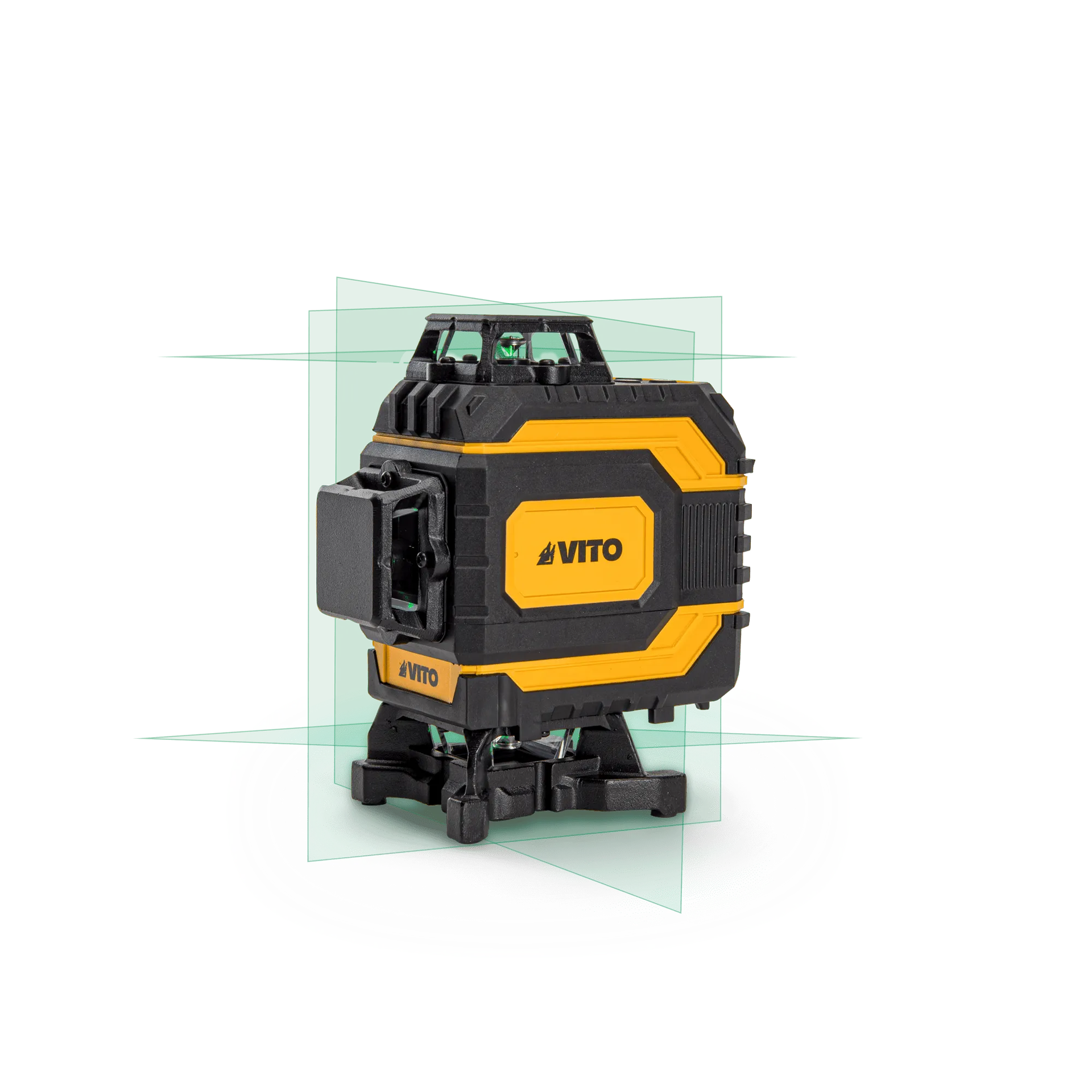 El láser autonivelante de líneas cruzadas de VITO proyecta 2 líneas de color verde, una horizontal y otra vertical, que pueden utilizarse simultáneamente o alternarse de forma independiente. Equipado con uno láser de clase 2,<1mw de potencia, el aparato tiene un alcance de 20 metros y una precisión de +/- 0,5 mm/m. Está indicado para nivelar superficies interiores y exteriores como paredes, suelos y techos, entre otros. Viene con 2 pilas recargables de 1,5 (AA) y una autonomía de 3 horas, incluye también una rosca de fijación para trípode de ¼”.